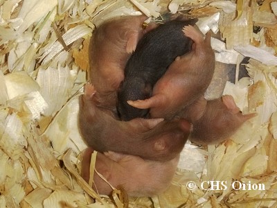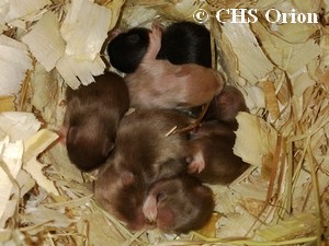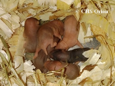 U mláďat se již dá rozpoznat délka srsti, nebo přibližně odhadnout. Už jsou z nich malí uličníci, načapat je všechny v hnízdečku, to je umění ... Mají obrovskou spotřebu jídla, mléko už nepijí.